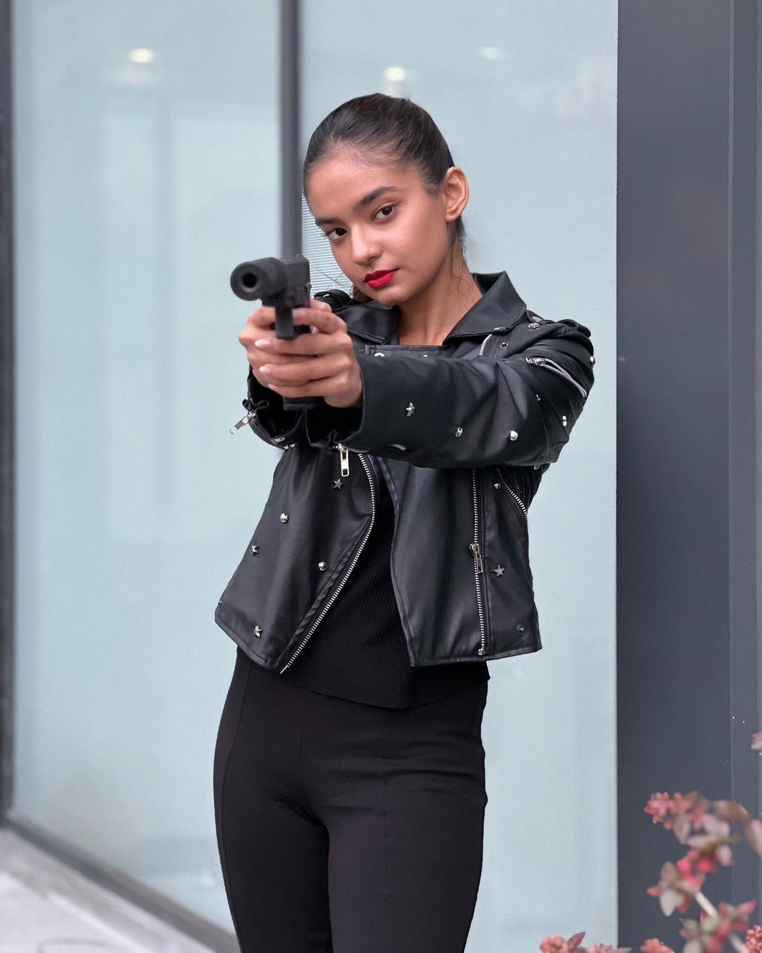 అనతికాలంలోనే సోషల్ మీడియాలో సంచలనంగా మారింది అనుష్క సేన్. అటువంటి పరిస్థితిలో, ఇప్పుడు మళ్ళీ నటి యొక్క స్టైలిష్ లుక్ కనిపించింది. లేటెస్ట్ ఫోటోలలో అనుష్క లేడీ డాన్ లుక్ లో కనిపించింది. ఈ ఫోటోషూట్ కోసం ఆమె బ్లాక్ జీన్స్, మ్యాచింగ్ టాప్ మరియు బ్లాక్ కలర్ లెదర్ జాకెట్ ధరించింది. దీంతో నలుపురంగు బూట్లు ధరించాడు. ఈ ఫోటోషూట్ కోసం, నటి చేతిలో తుపాకీ పట్టుకుని అక్రమార్జనలో పోజులిచ్చింది.