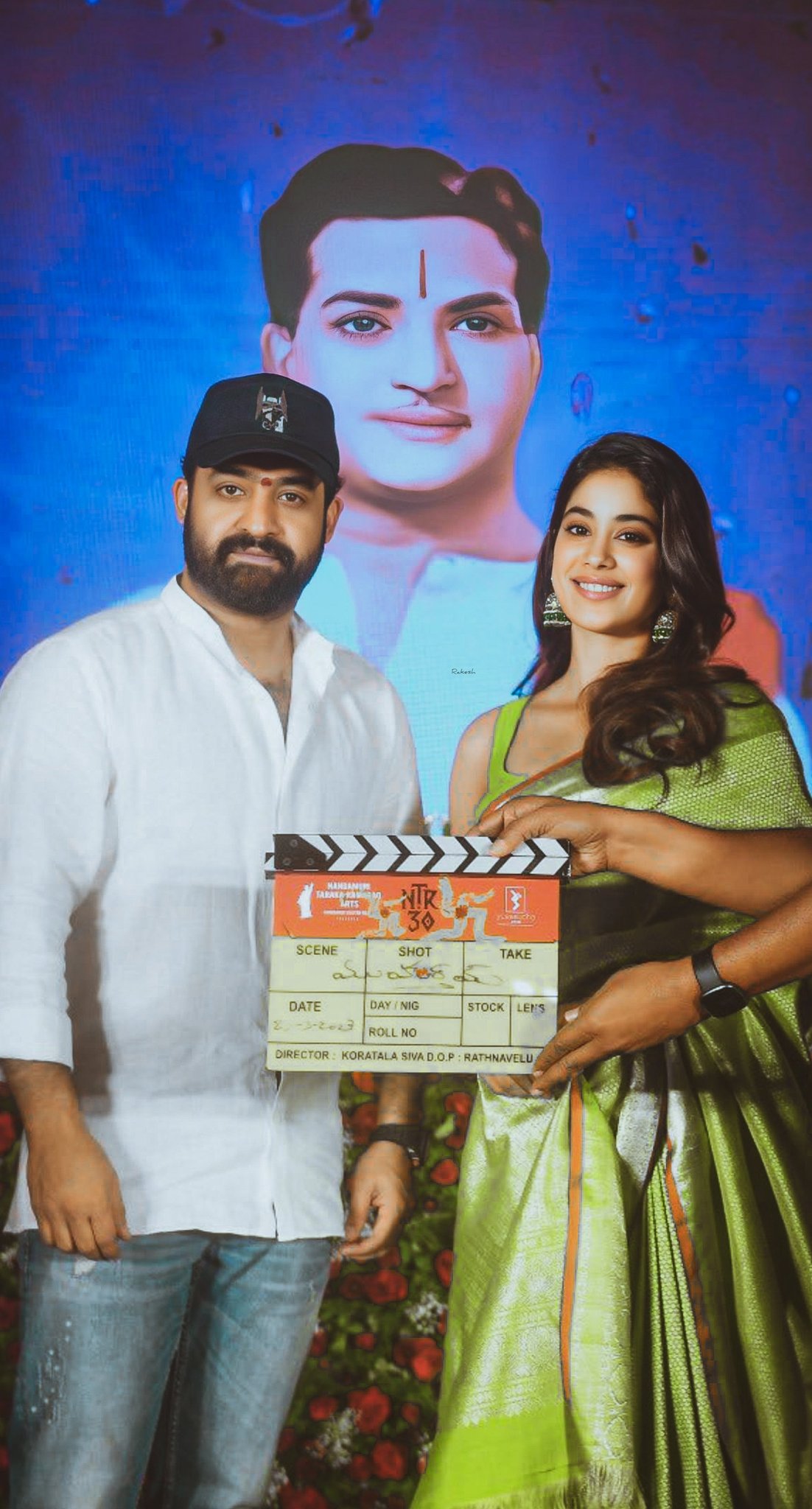 ‘ఎన్టీఆర్30’ ఓపెనింగ్ కు జాన్వీ కపూర్ సంప్రదాయ దుస్తుల్లో హాజరైంది. గ్రీన్ శారీలో కార్యక్రమంలో సందడి చేసింది. అందుకు సంబంధించిన ఫొటోలను అభిమానులతో తాజాగా పంచుకుంది.అతిలోక సుందరి, దివంగత నటి శ్రీదేవి కూతురిగా తెలుగు ప్రేక్షకులకు కూడా జాన్వీ కపూర్ చాలా దగ్గరైంది. ఇప్పటికే బాలీవుడ్ లో యంగ్ హీరోయిన్ గా వరుస చిత్రాలతో తనదైన ముద్ర వేసుకుంది. ఇక సౌత్ ఆడియెన్స్ ను కూడా అలరించబోతోంది.