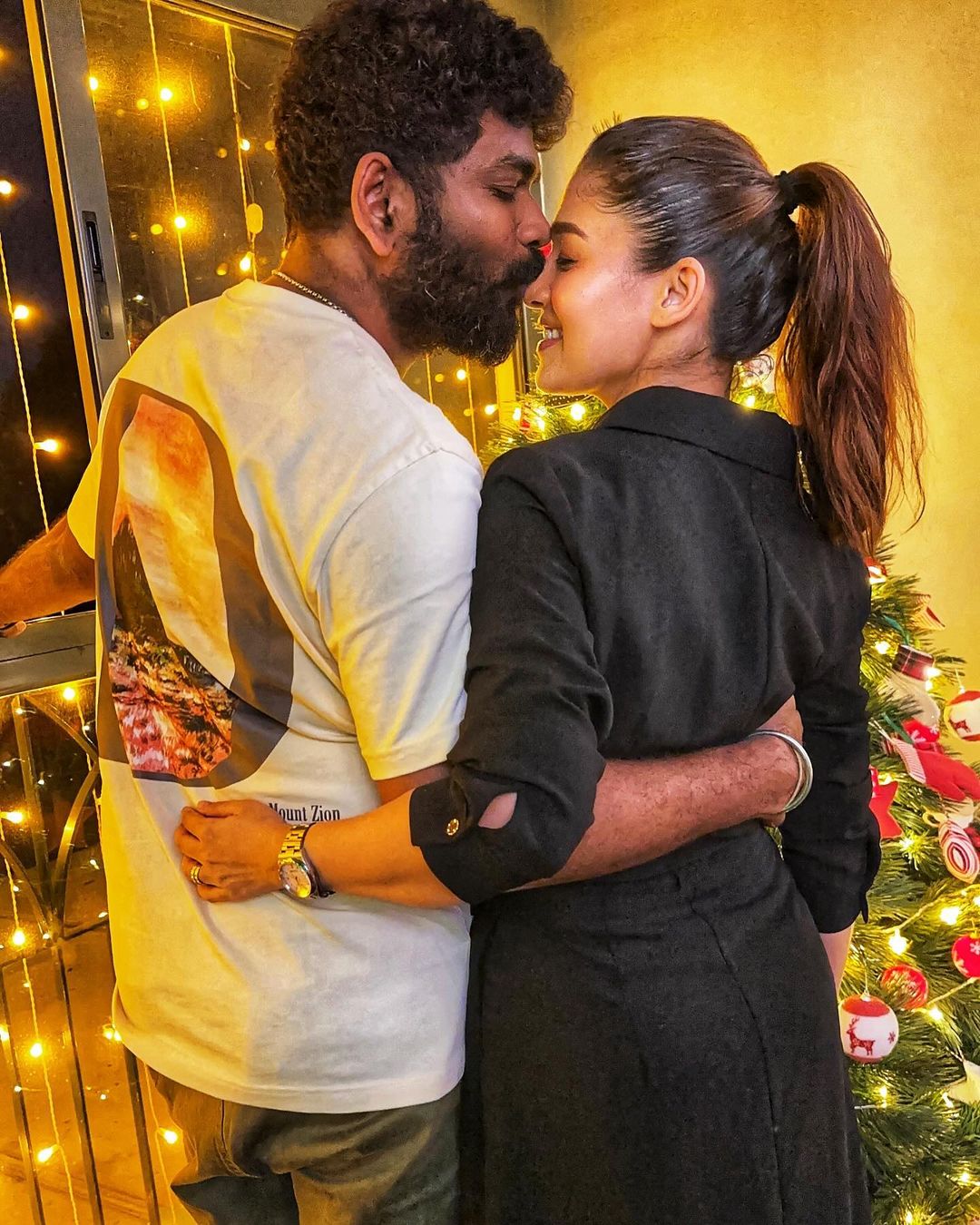మొదటి చిత్రం విఘ్నేష్ శివన్ వారి క్రిస్మస్ చెట్టు ముందు నయనతారను ముద్దుపెట్టుకోవడం.రెండవ ఫోటో వారి ఇద్దరు కుమారులు ఉయిర్ మరియు ఉలాగ్లతో కూడిన అందమైన కుటుంబ చిత్రం.నయనతార మరియు విఘ్నేష్ల క్రిస్మస్ వేడుకలునయనతార మరియు విఘ్నేష్ శివన్ తరచుగా తమ కుటుంబ సభ్యులతో ప్రత్యేక సందర్భాలను జరుపుకోవడం ఒక పాయింట్. డిసెంబర్ 25న, ఈ జంట ఎరుపు రంగు దుస్తులతో కొన్ని చిత్రాలను పంచుకున్నారు.