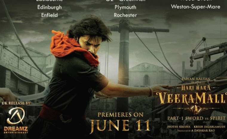 టాలీవుడ్ పవర్ స్టార్ పవన్ కళ్యాణ్ యొక్క ఎంతో ఆసక్తిగా ఎదురుచూస్తున్న పాన్-ఇండియన్ చిత్రం 'హరి హర వీర మల్లు: పార్ట్ 1-స్వోర్డ్ వర్సెస్ స్పిరిట్' పై భారీ అంచనాలు ఉన్నాయి. జ్యోతి కృష్ణ మరియు క్రిష్ జగర్లముడి దర్శకత్వం వహించిన ఈ బిగ్గీని ఎ. దయాకర్ రావు నిర్మిస్తున్నారు. ఈ చిత్రంలో నిధీ అగర్వాల్ మహిళా ప్రధాన పాత్రలో నటించారు మరియు బాబీ డియోల్, నాజర్, నార్గిస్ ఫఖ్రీ, అనుపమ్ ఖేర్, సుబ్బరాజు, సునీల్, విక్రమ్జీత్ విర్క్, నోరా ఫతేహి మరియు ఇతరులు కీలక పాత్రలు పోషిస్తారు. తాజాగా చిత్ర బృందం ఈ సినిమా యొక్క UK రైట్స్ ని డ్రీమ్స్ ఎంటర్టైన్మెంట్ బ్యానర్ సొంతం చేసుకున్నట్లు ప్రకటించింది. ఈ విషయాన్ని మేకర్స్ సోషల్ మీడియాలో సరికొత్త పోస్టర్ ని విడుదల చేసారు. ఈ సినిమా ప్రీమియర్ జూన్ 11న ప్రారంభం కానున్నాయి. ఈ హై-బడ్జెట్ పీరియడ్ యాక్షన్ డ్రామా 17 వ శతాబ్దపు మొఘల్ సామ్రాజ్యం నేపథ్యానికి వ్యతిరేకంగా సెట్ చేయబడింది. సాంకేతిక బృందంలో సినిమాటోగ్రాఫర్ మనోజ్ పరమహంస, ప్రొడక్షన్ డిజైనర్ తోట తరణి ఉన్నారు. ఈ చిత్రం రెండు భాగాలుగా విడుదల కానుంది. ఈ చిత్రానికి MM కీరావానీ సంగీత స్వరకర్త. ఎ.ఎం. రత్నం ఈ చిత్రాన్ని సమర్పిస్తున్నారు. ఈ పీరియడ్ యాక్షన్ అడ్వెంచర్ జూన్ 12, 2025న బహుళ భారతీయ భాషలలో ప్రపంచవ్యాప్తంగా విడుదల కానుంది.