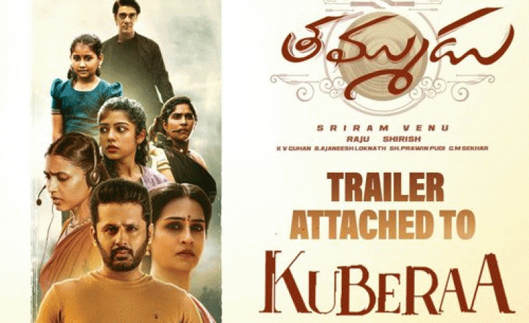 టాలీవుడ్ యువ నటుడు నితిన్ రాబోయే ఎమోషనల్ యాక్షన్ డ్రామా చిత్రం 'తమ్ముడు' తో ప్రేక్షకులని అలరించటానికి సిద్ధంగా ఉన్నారు. వేణు శ్రీరామ్ దర్శకత్వం వహించిన ఈ చిత్రం పై భారీ అంచనాలు ఉన్నాయి. ఈ సినిమా ట్రైలర్ ఇటీవలే విడుదల అయ్యి సాలిడ్ రెస్పాన్స్ ని అందుకుంది మరియు భారీ బజ్ ని క్రియేట్ చేసింది. తాజాగా చిత్ర బృందం ఈ సినిమా యొక్క ట్రైలర్ ని కుబేర మూవీతో జోడించినట్లు ప్రకటించింది. ఈ విషయాన్ని తెలియజేసేందుకు ప్రొడక్షన్ హౌస్ సోషల్ మీడియాలో సరికొత్త పోస్టర్ ని విడుదల చేసింది. సప్తమి గౌడ ఈ చిత్రంలో మహిళా ప్రధాన పాత్ర పోషిస్తున్నారు. లయా, లబ్బర్ పాంధు ఫేమ్ స్వాసికా, వర్ష బొల్లమ్మ, మరియు సౌరాబ్ సచదేవా సహాయక పాత్రలు పోషిస్తున్నారు. దిల్ రాజు మరియు షిరిష్ శ్రీ వెంకటేశ్వర క్రియేషన్స్ పతాకంపై ఈ సినిమాని నిర్మించారు. ఈ సినిమాకి అజనీష్ లోక్నాథ్ ట్యూన్లను కంపోజ్ చేస్తున్నారు. ఈ సినిమా జూలై 4, 2025న విడుదలకి సిద్ధంగా ఉంది.