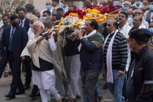 Prime Minister Modi reached Gujarat early this morning and performed the last rites at Muktidham crematorium in Sector 30 of Gandhinagar.