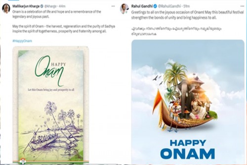 New Delhi, Aug 29 (IANS) Congress President Mallikarjun Kharge and party leader Rahul Gandhi on Tuesday greeted the nation on the occasion of Onam.