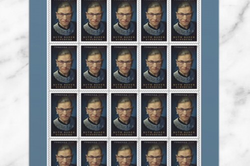 The Ruth Bader Ginsburg stamp is being issued as a Forever stamp and is available in panes of 20 at select Post Office locations nationwide and online at the USPS website.