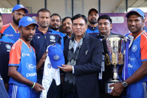 New Delhi, Jan 24 (IANS) The Union Sports Minister Mansukh Mandaviya felicitated the Indian Physical Disability (PD) Cricket Team on Friday for winning the PD Champions Trophy 2025 in Colombo, Sri Lanka. The team defeated England in the tournament final, demonstrating exceptional skill and resilience.