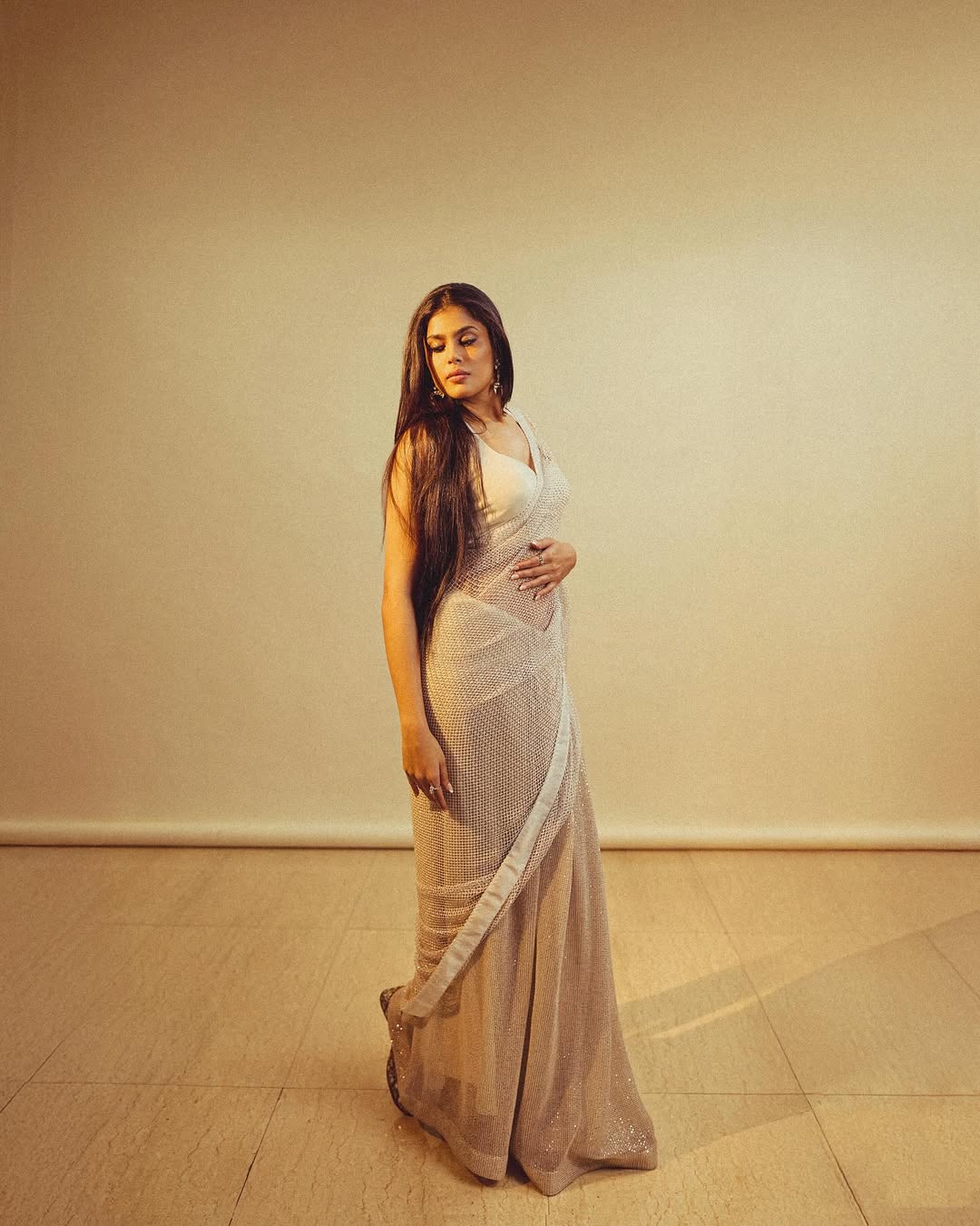 హైదరాబాదీ అమ్మాయి ఫరియా అబ్దుల్లా గురించి ప్రత్యేకంగా చెప్పాల్సిన అవసరం లేదు. 2021లో తెలుగులో వచ్చిన జాతిరత్నాలు ద్వారా ఇండస్ట్రీలోకి అడుగుపెట్టింది ఈ పొడుగుకాళ్ల సుందరి.ల్లోకి రాకముందు మోడలింగ్, థియేటర్ ఆర్టిస్ట్గా, యూట్యూబర్గా పలు వీడియోలు చేసింది.అలాగే ఓ వెబ్ సిరీస్ లోనూ నటించింది. అఖిల్ హీరోగా నటించిన మోస్ట్ ఎలిజిబుల్ బ్యాచ్లర్ లో చిన్న పాత్ర చేసింది. అలాగే నాగార్జున, నాగ చైతన్య బంగార్రాజు లో స్పెషల్ సాంగ్ చేసింది. ఈ సాంగ్ లో తన డాన్స్ తో ఆకట్టుకుంది ఈ బ్యూటీ.. తర్వాత వరుసగా లు చేసింది కానీ హిట్స్ అందుకోలేకపోయింది.లైక్ షేర్ అండ్ సబ్స్క్రైబ్. రవితేజ రావణాసుర, రీసెంట్ గా అల్లరి నరేష్ హీరోగా నటించిన ఆ ఒక్కటీ అడక్కు లు చేసింది. కానీ ఈ లు ఫరియా అబ్దుల్లా సక్సెస్ తెచ్చిపెట్టలేదు. ఇక ఇప్పుడు మత్తు వదలరా 2 లో నటిస్తుంది. ఈ లో ఫరియా అబ్దుల్లా గ్లామరస్ గా కనిపించనుంది.రీసెంట్ గా ప్రభాస్ నటించిన కల్కి లో ఓ సాంగ్ లో ఇలా కనిపించి అలా మాయం అయ్యింది ఈ చిన్నది. అలాగే ఓ డాన్స్ షోలో జడ్జ్ గాను చేసింది. ప్రస్తుతం ఈ బ్యూటీ ల స్పీడ్ తగ్గించింది. కొత్త లు అనౌన్స్ చేయడం లేదు ఈ భామ.ఇక సోషల్ మీడియాలో ఈ బ్యూటీ ఓ రేంజ్ లో అందాలు ఆరబోస్తూ ఆకట్టుకుంటుంది. ఈ మధ్యకాలంలో తన అందాలతో ఆకట్టుకుంటోంది ఈ బ్యూటీ. హాట్ హాట్ ఫొటోలతో సోషల్ మీడియాలో హీట్ పుట్టిస్తోంది ఈ అమ్మడు. తాజాగా ఉల్లిపొరలాంటి చీరలో వయ్యారాలు ఒలకబోసింది ఈ ముద్దుగుమ్మ. ఈ ఫోటోలు వైరల్ అవుతున్నాయి.