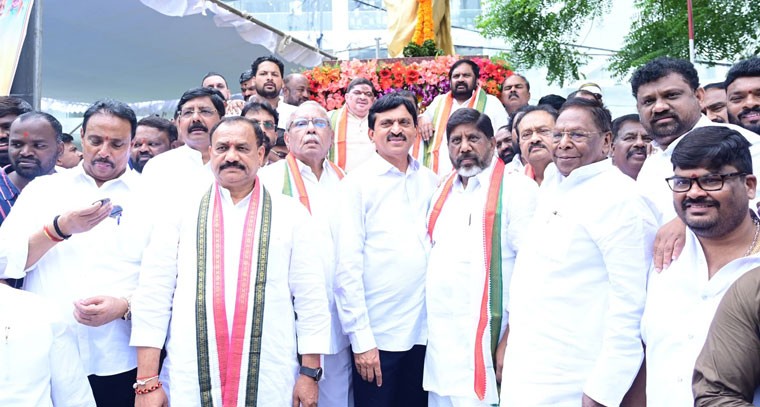 దివంగత మాజీ ముఖ్యమంత్రి, ప్రజానేత డా. వై.ఎస్. రాజశేఖర్ రెడ్డి గారి జయంతిని పురస్కరించుకుని, హైదరాబాద్ పంజాగుట్టలోని ఆ మహనీయుని విగ్రహానికి డిప్యూటీ సీఎం మల్లు భట్టి విక్రమార్క, టీపీసీసీ అధ్యక్షులు (ఎమ్మెల్సీ) మహేష్ కుమార్ గౌడ్, రాష్ట్ర మంత్రులు, ఎమ్మెల్యేలు, ఎమ్మెల్సీలు, మాజీ రాజ్యసభ సభ్యులు, సీనియర్ కాంగ్రెస్ నేత కేవీపీ రామచంద్రరావు మరియు ఇతర కాంగ్రెస్ నాయకులు ఘనంగా నివాళులు అర్పించారు.