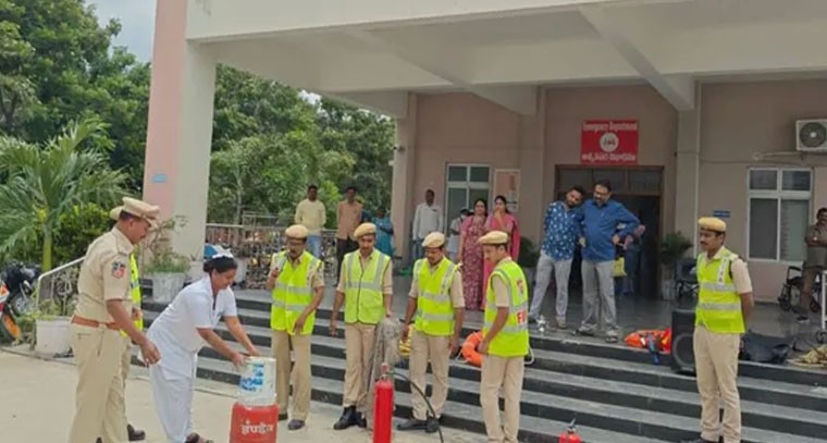 వేములవాడ ప్రభుత్వ ఆస్పత్రిలో గురువారం అగ్నిప్రమాదాల సమయంలో తీసుకోవాల్సిన అత్యవసర చర్యలపై అవగాహన కల్పించే ఉద్దేశ్యంతో ఫైర్ సిబ్బంది మాక్ డ్రిల్ నిర్వహించారు. ఆసుపత్రి సిబ్బందిలో అప్రమత్తత పెంచేందుకు అధికారులు ఈ కార్యక్రమాన్ని ఏర్పాటు చేశారు. అగ్నిప్రమాదం సంభవించిన వెంటనే ఎలా స్పందించాలి, రోగులను ఎలా సురక్షితంగా తరలించాలి, ఎమర్జెన్సీ సిగ్నల్స్ను ఎలా వినియోగించాలి వంటి అంశాలపై ప్రాక్టికల్ డెమో ఇచ్చారు.