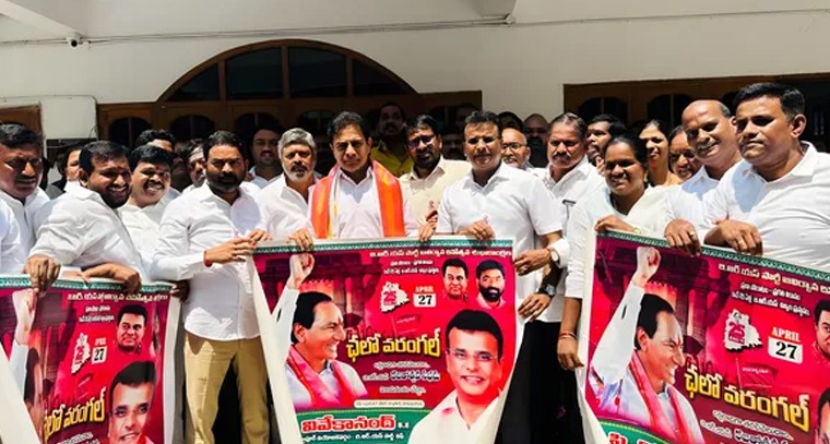 కుత్బుల్లాపూర్ నియోజకవర్గం నంది హిల్స్ లోని కేటీఆర్ నివాస కార్యాలయంలో జరిగిన కార్యక్రమంలో ఎమ్మెల్యే కెపి. వివేకానంద్ ఆధ్వర్యంలో రూపొందించబడిన"ఛలో వరంగల్" బీఆర్ఎస్ రజతోత్సవ వేడుకల వాల్ పోస్టర్ ను మంగళవారం బీఆర్ఎస్ పార్టీ వర్కింగ్ ప్రెసిడెంట్ కేటీఆర్ ఆవిష్కరించారు. ఈనెల 27న వరంగల్ లో నిర్వహించే బీఆర్ఎస్ రజతోత్సవ వేడుకలను విజయవంతం చేసేందుకు కుత్బుల్లాపూర్ నుంచి భారీ సంఖ్యలో పాల్గొనాలని అన్నారు.