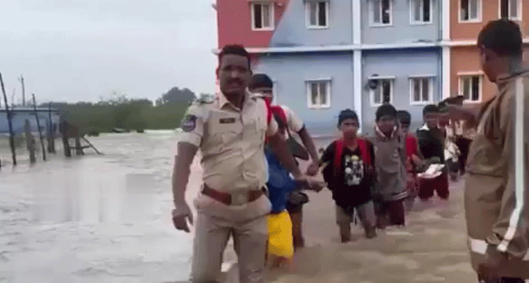 మొంథా తుఫాన్ ప్రభావంతో తెలంగాణలో ఎడతెరిపి లేకుండా కురుస్తున్న వర్షాలకు పలు ప్రాంతాలు జలమయం అయ్యాయి. ఈ నేపథ్యంలోనే నల్గొండ జిల్లా దేవరకొండ గురుకుల పాఠశాలలో చుట్టూ భారీగా వరద నీరు చేరింది. దీంతో విద్యార్థులు ఆందోళనకు గురయ్యారు. విషయం తెలుసుకున్న అధికారులు.. అక్కడికి చేరుకుని విద్యార్థులకు సురక్షిత ప్రాంతాలకు తరలించారు. ఈ వీడియో సోషల్ మీడియాలో వైరల్ అవుతోంది.